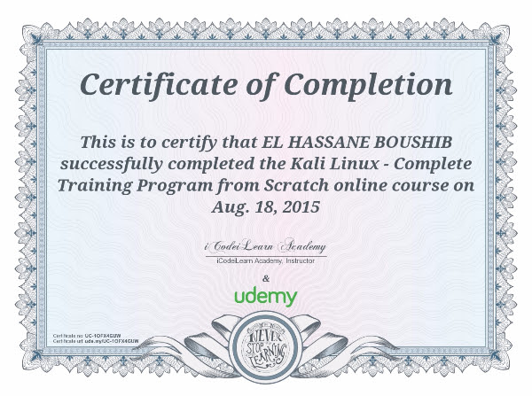 و انوه على انه يمكنك الحصول على شهادة اتمام الكورس، تحت امتدادpdf او jpg تماما كالشهادة التالية:
