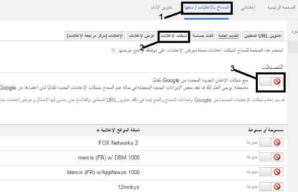 الطريقة تكمن في منع إعلانات الشركات التي تدفع ثمنا ضئيلا على كل نقرة، وإضافة الإعلانات التي تدفع اكثر من دولار واحد على كل نقرة، فقط أدخل إلى حسابك في جوجل أدسنس، و اذهب إلى خيارالسماح بالإعلانات/منعها. ثم اختر شبكات الإعلانات، و قم بمنع جميع الإعلانات و كذلك خيار التفضيلات: