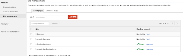 بعد ذلك تتوجه إلى Site managment ويجب ان تجد امام إسم موقعك كلمة باللون الاخضر Ready ، وهذا يعني ان موقعك تم قبوله من اجل إستعمال هذه الخاصية .