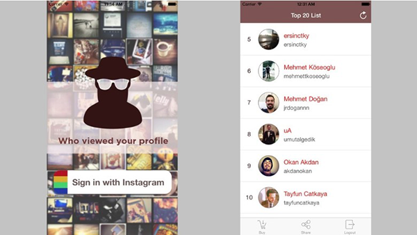 هذا التطبيق نشر على اساس انه يسمح لمُستخدمي لإينستاجرام بمعرفة من قام بزيارة حسابهم والإطلاع على الصور، فضلًا عن إمكانية معرفة من قام بحظر أو إلغاء المُتابعة. لكن في النية الحقيقية للتطبيق كانت سرقة كلمة المرور واسم المستخدم لمُستخدمي لإينستاجرام ! وتم حذفه من المتجرين .