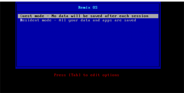 8. في القائمة ستلاحظ ظهور خيارين الأول هوGuest mode ، فهو والذي يعني انه يمكنك تجربة النظام والاشتغال ولكن جميع الإعدادات المخزنة، بما فيها البرامج والبيانات سيتم حذفها بمجرد إعادة تشغيل الكمبيوتر. اما إذا قمت بتحديد الخيار الثاني ''Resident mode'' فيمكنك العمل مع Remix OS كنظام تشغيل عادي.بحيت يمكنك حفظ بياناتك واعداداتك وستبقى كما هي حتى في حالة قمث باعادة تشغيل الحاسوب . لان في هذا الوضع سيتم تخزين جميع البيانات الخاصة بك في قسم مخصص على مفتاح الذي تبث فيه النظام .طبعا يمكنك الوصول لجميع بياناتك والاعدادات الخاصة بك كما هي في اي حاسوب اخر !