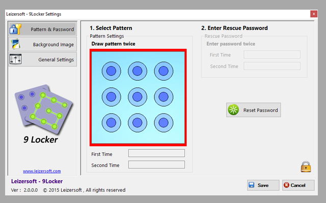 البرنامج يدعى 9Locker وهو برنامج مجاني وسهل الاستخدام حيث يسمح لك هذا البرنامج من استعمال النمط كقفل لحاسوبك، فكل ما عليك فعله هو تحميل البرنامج من هنا وتثبيته بعد ذلك ستقوم بفتح البرنامج سيطلب منك حينها التعديل على مجموعة من الاعدادات مثل هل تود ان يظهر النمط عند ادخاله وتفعيل خاصية الانذار بعد ادخال النمط بشكل خاطئ لعدة مرات حيث سيقوم البرنامج باصدار رنين او ارسال رسالة الى ايميلك.